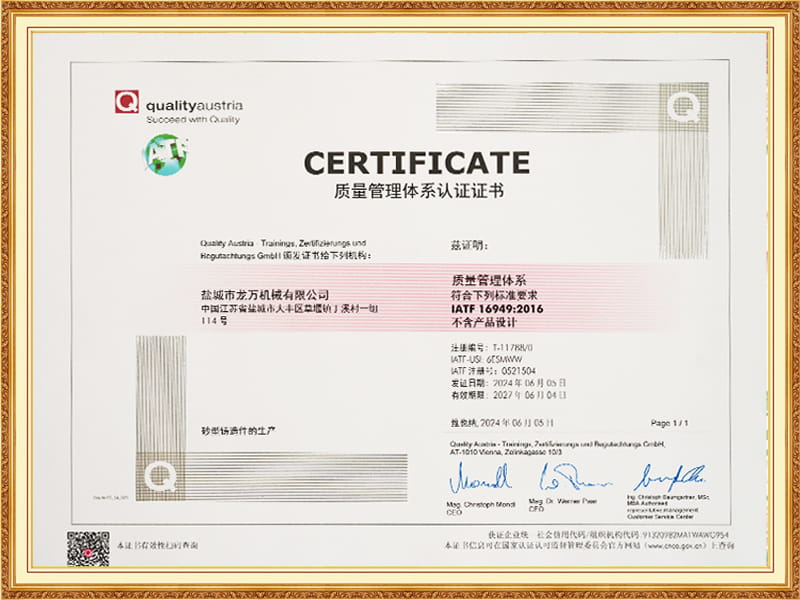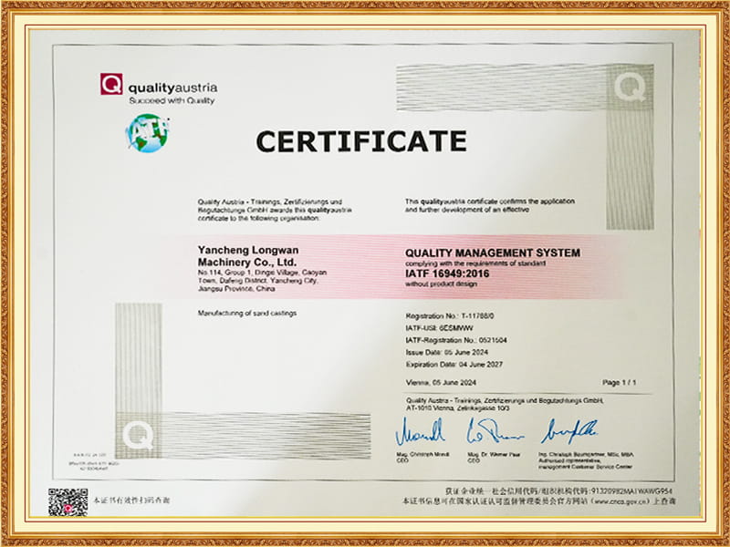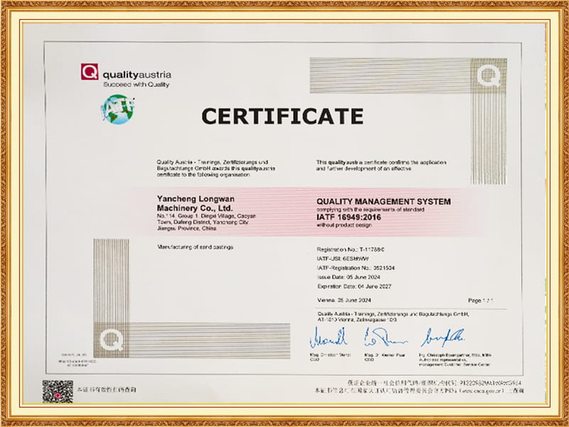 Longwan Machinery มีอุปกรณ์ปั้นทั้งในประเทศและต่างประเทศที่หลากหลายรวมถึงสายการผลิตอัตโนมัติ 2 สายสำหรับทรายดินเหนียวสายการผลิตกึ่งอัตโนมัติ 1 สายสำหรับทรายดินเหนียวและสายการผลิตทรายเคลือบ 1 สายโดยมีกำลังการผลิตต่อปี 15,000 ตัน